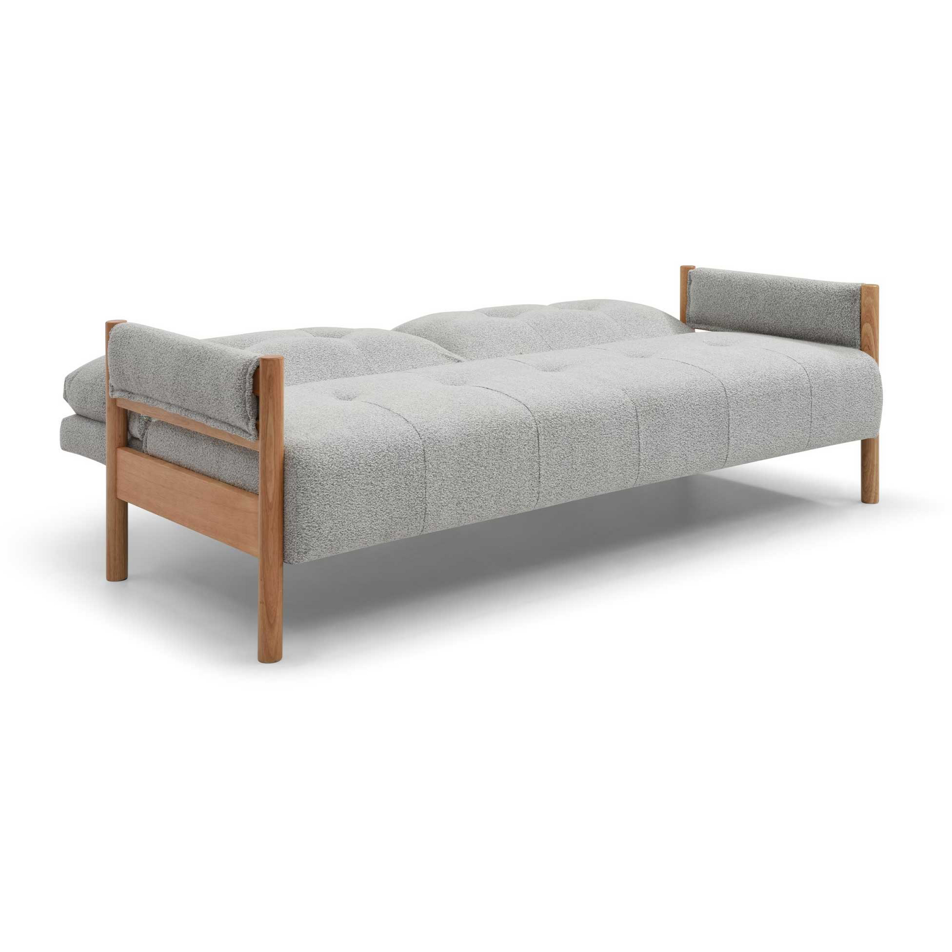 Effortlessly stylish and practical, the Quinn Sofa Bed is a modern Click Clack-style design, perfect for contemporary living spaces. It features a sturdy natural wooden frame paired with luxuriously soft boucle fabric in a subtle natural tone—bringing both comfort and elegance to any room. Easy to convert from sofa to bed in seconds, it's ideal for everyday use or accommodating overnight guests.